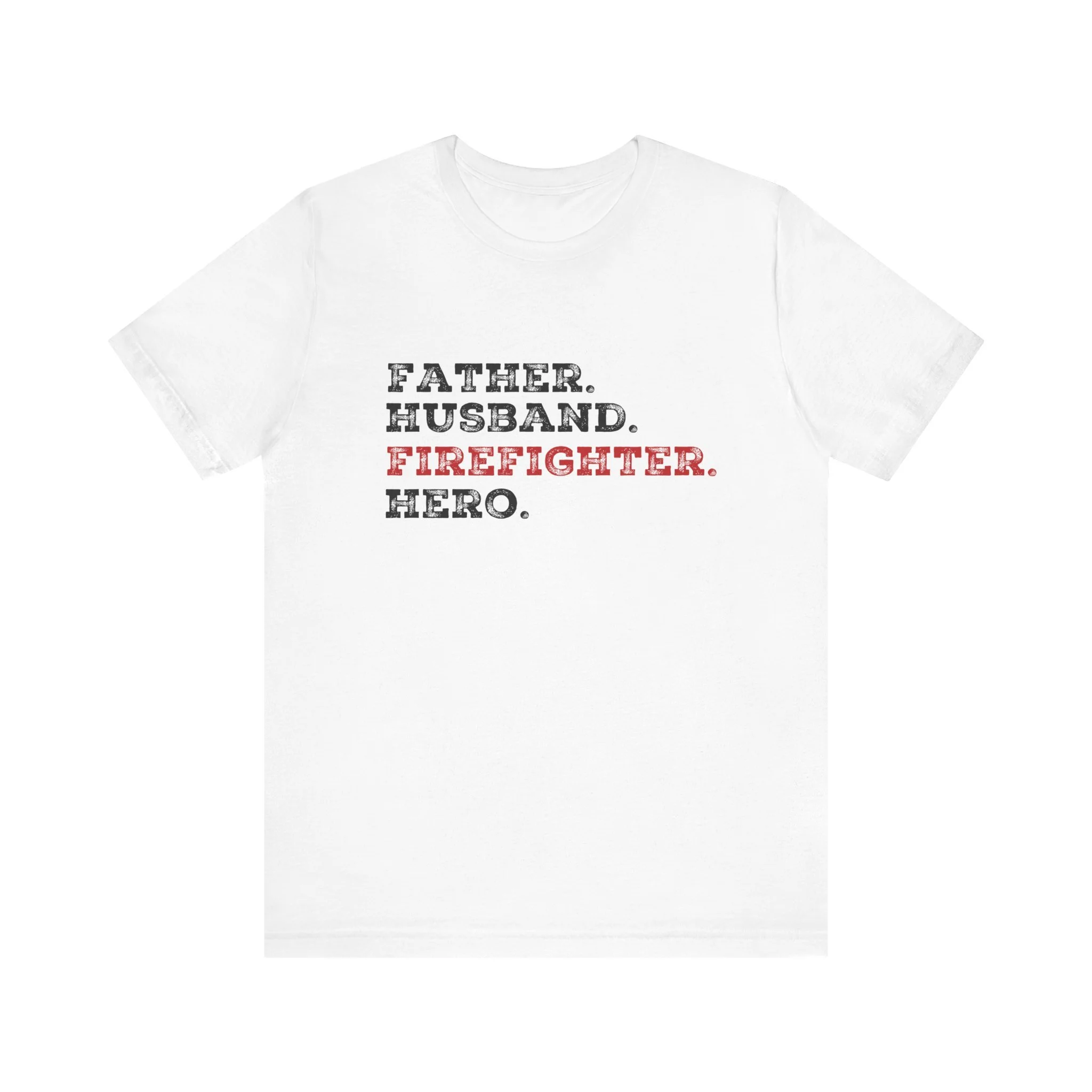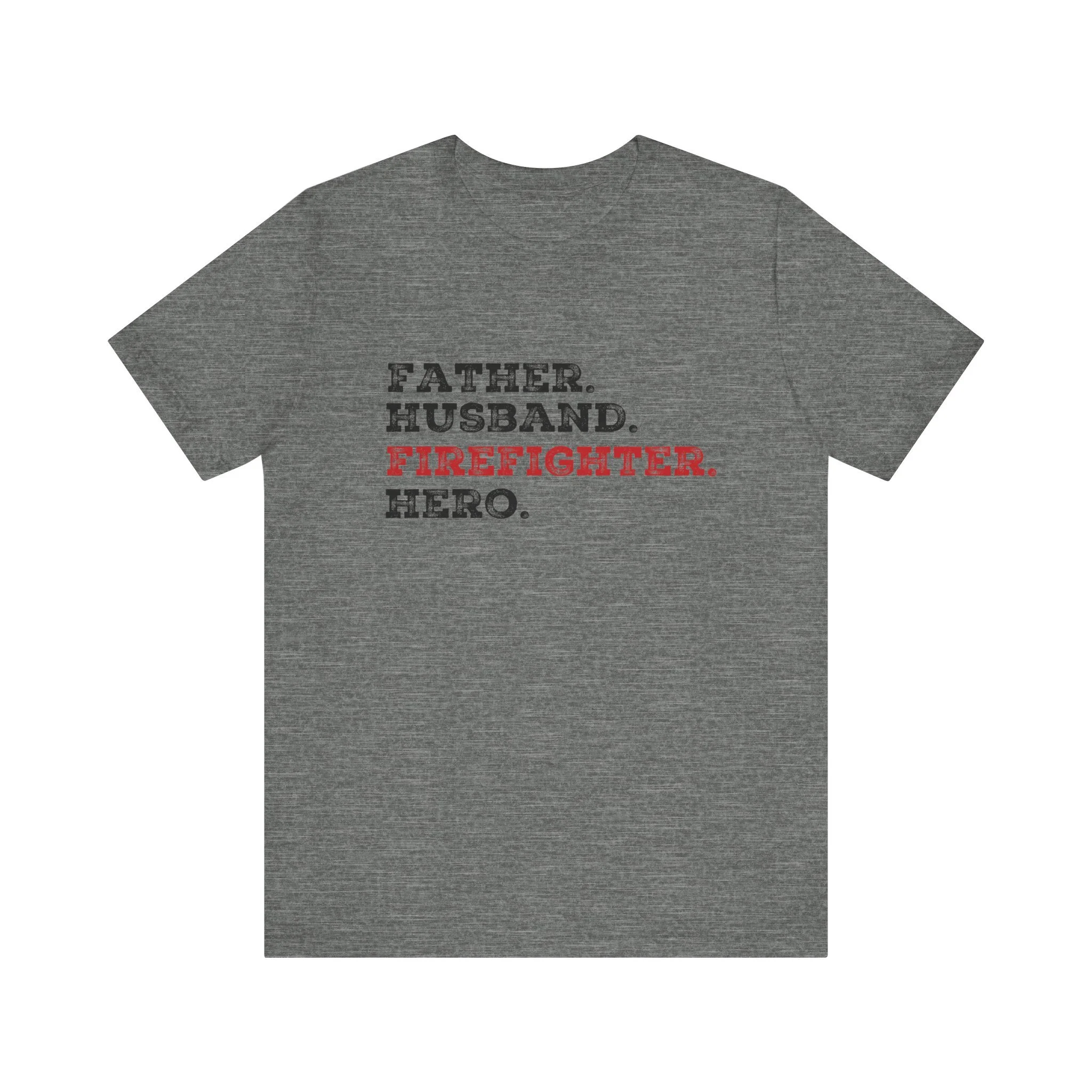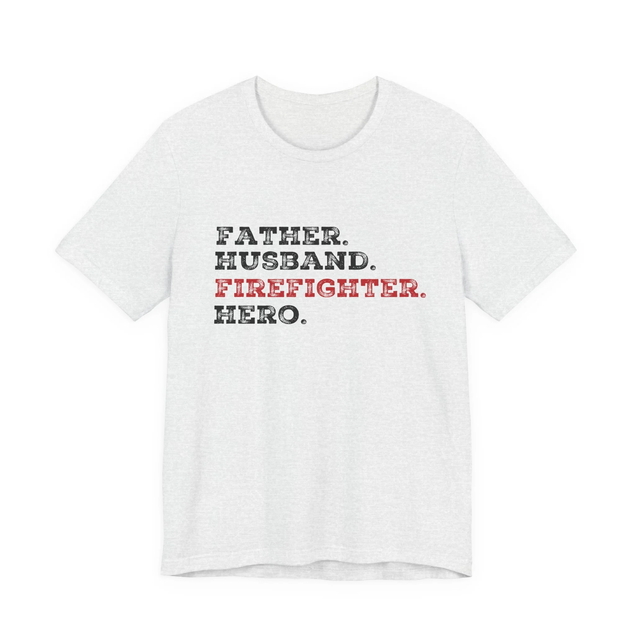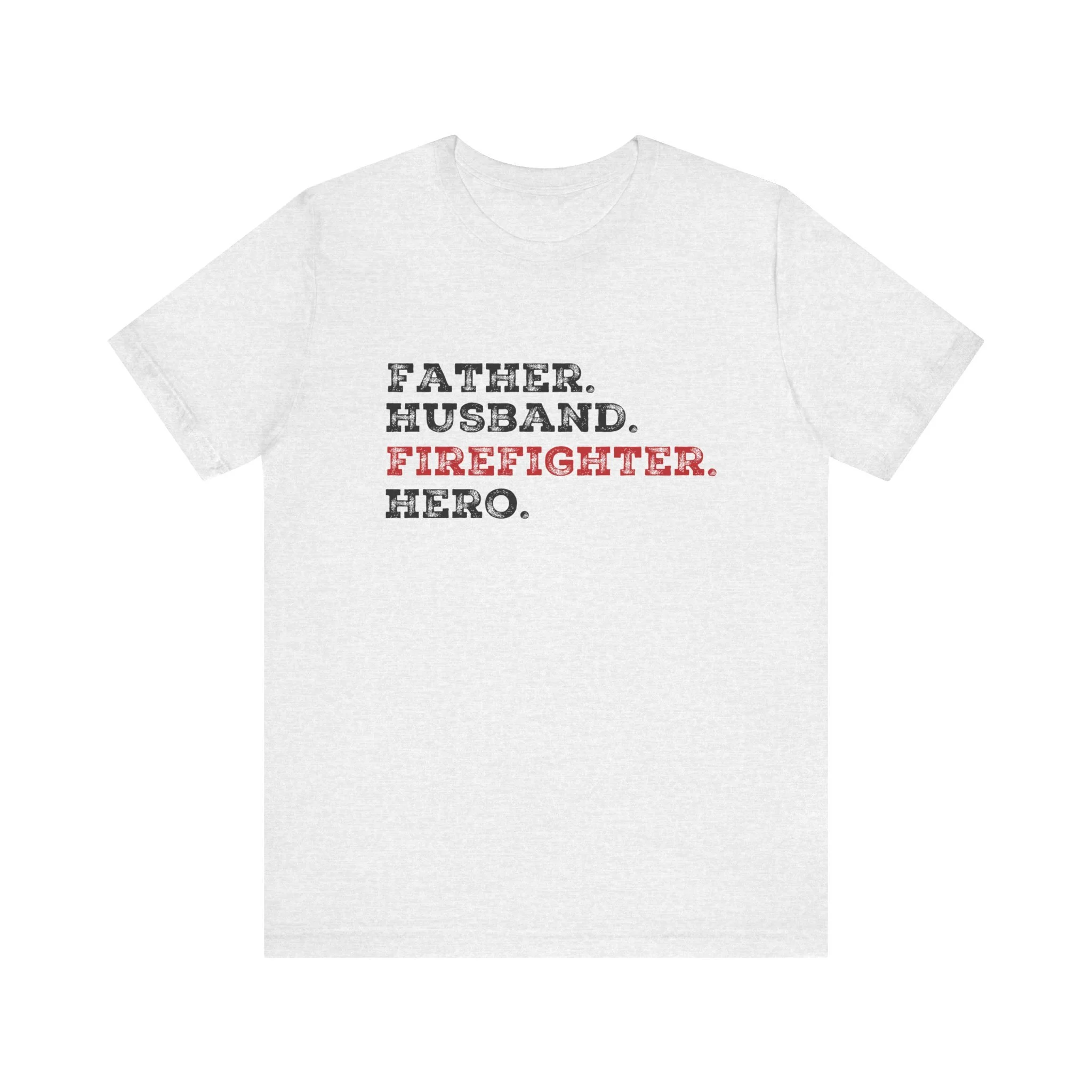 Celebrate the strength, love, and courage of the man who’s everything to you with our Father Husband Firefighter Hero tee. Designed with a stacked word layout, this shirt highlights "Firefighter" in bold red to stand out as the calling that connects each role.
