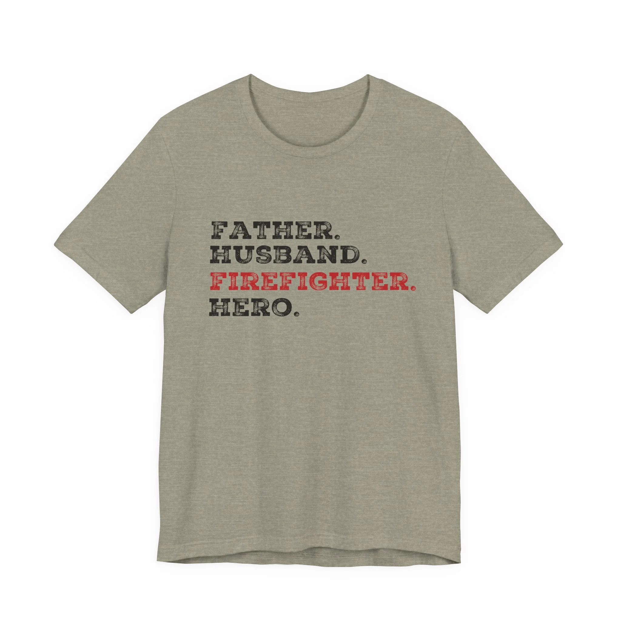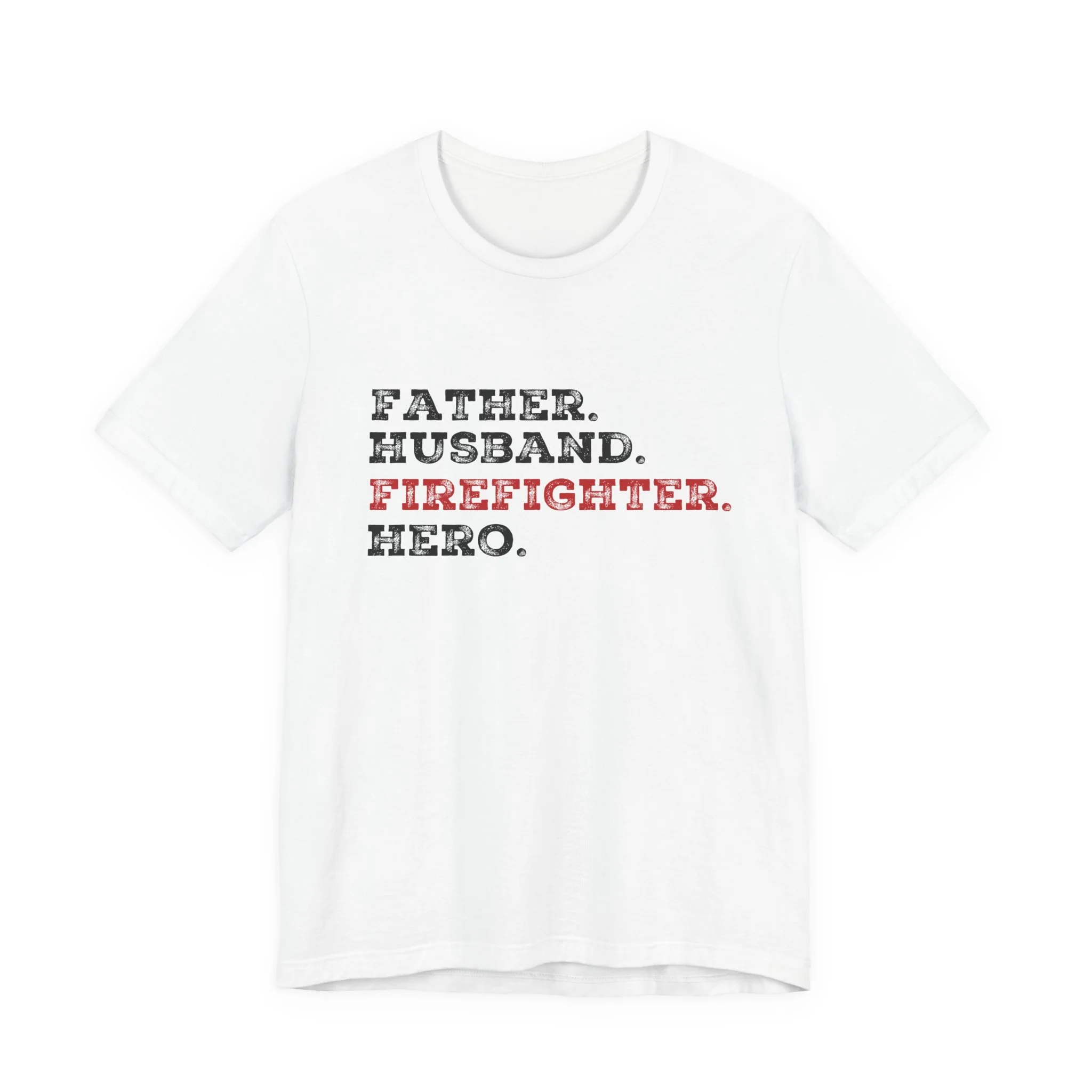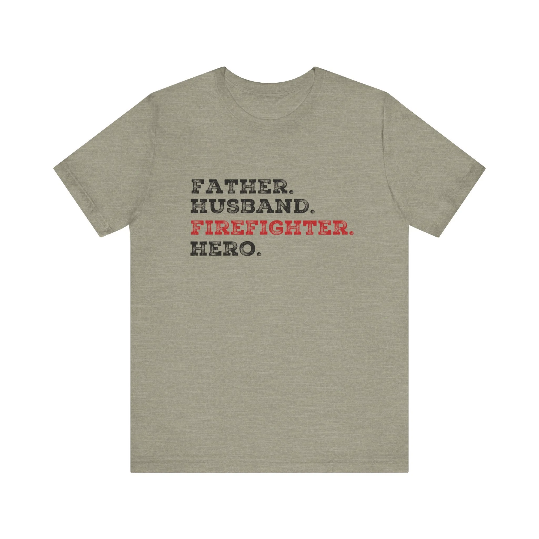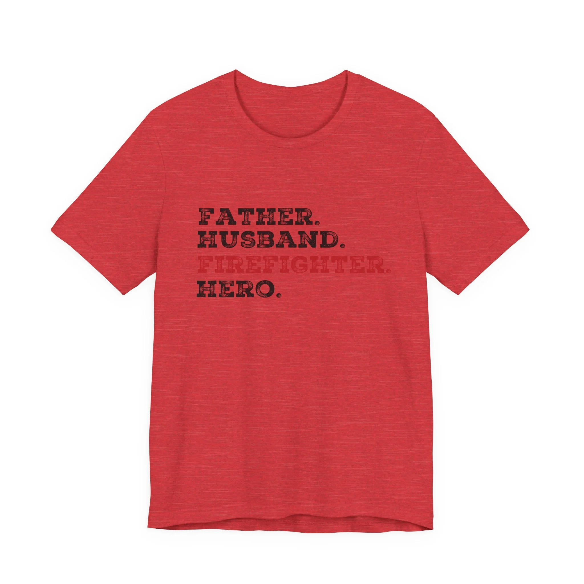 Celebrate the strength, love, and courage of the man who’s everything to you with our Father Husband Firefighter Hero tee. Designed with a stacked word layout, this shirt highlights "Firefighter" in bold red to stand out as the calling that connects each role.