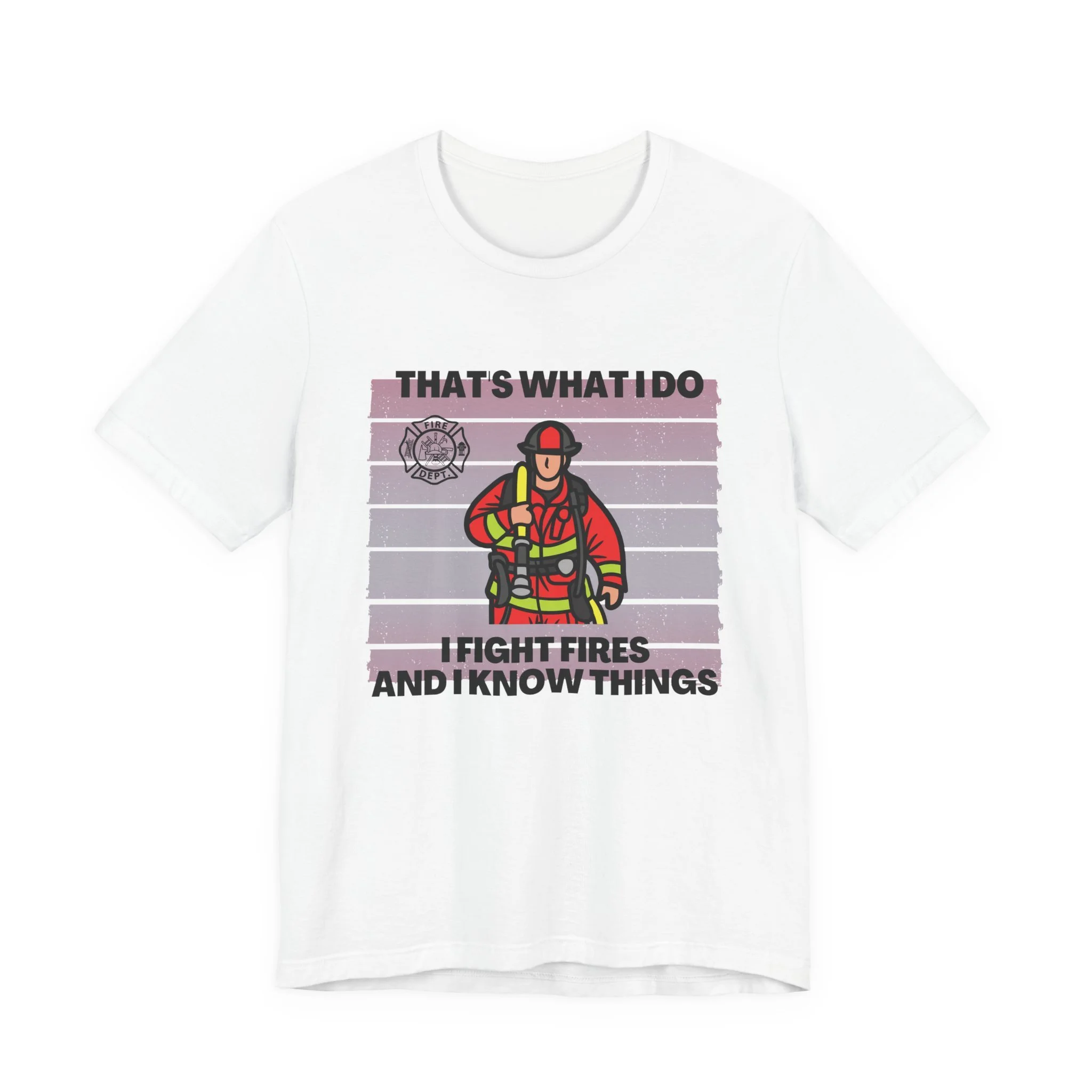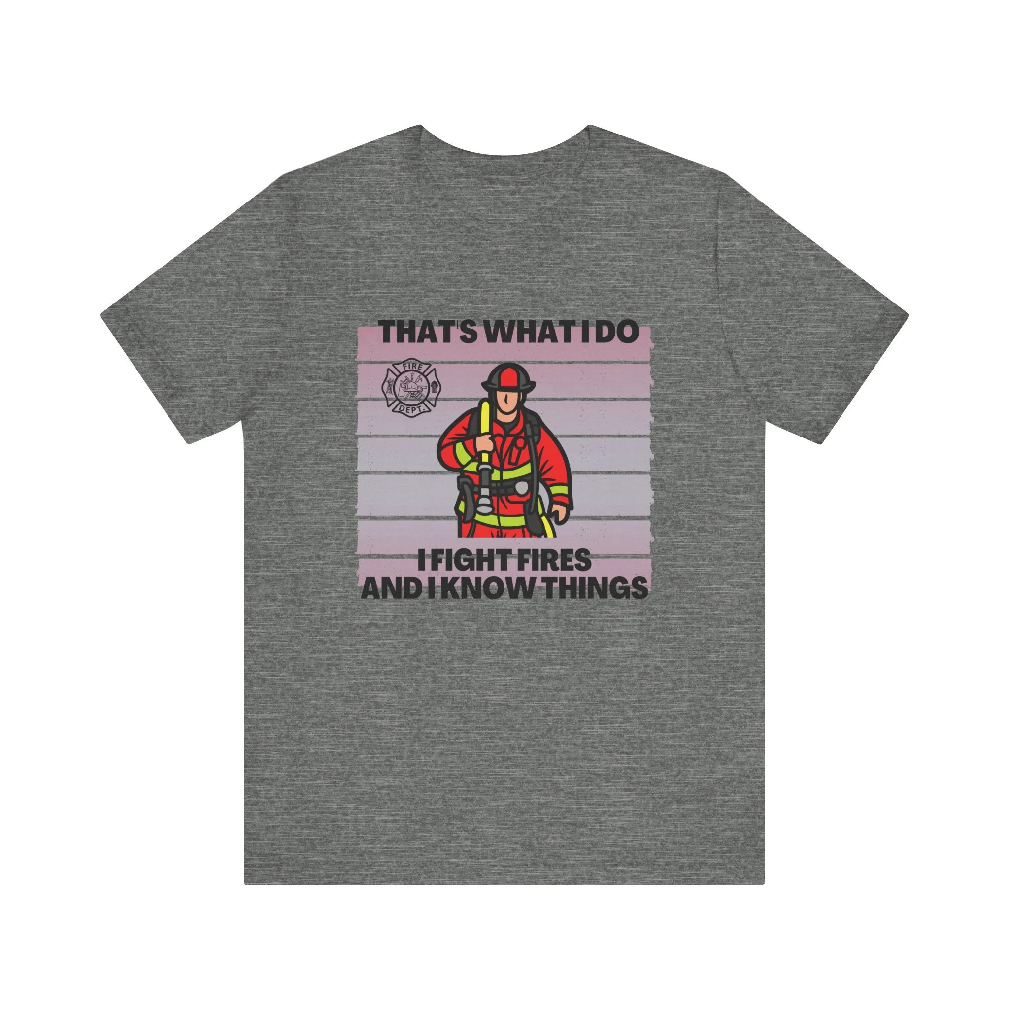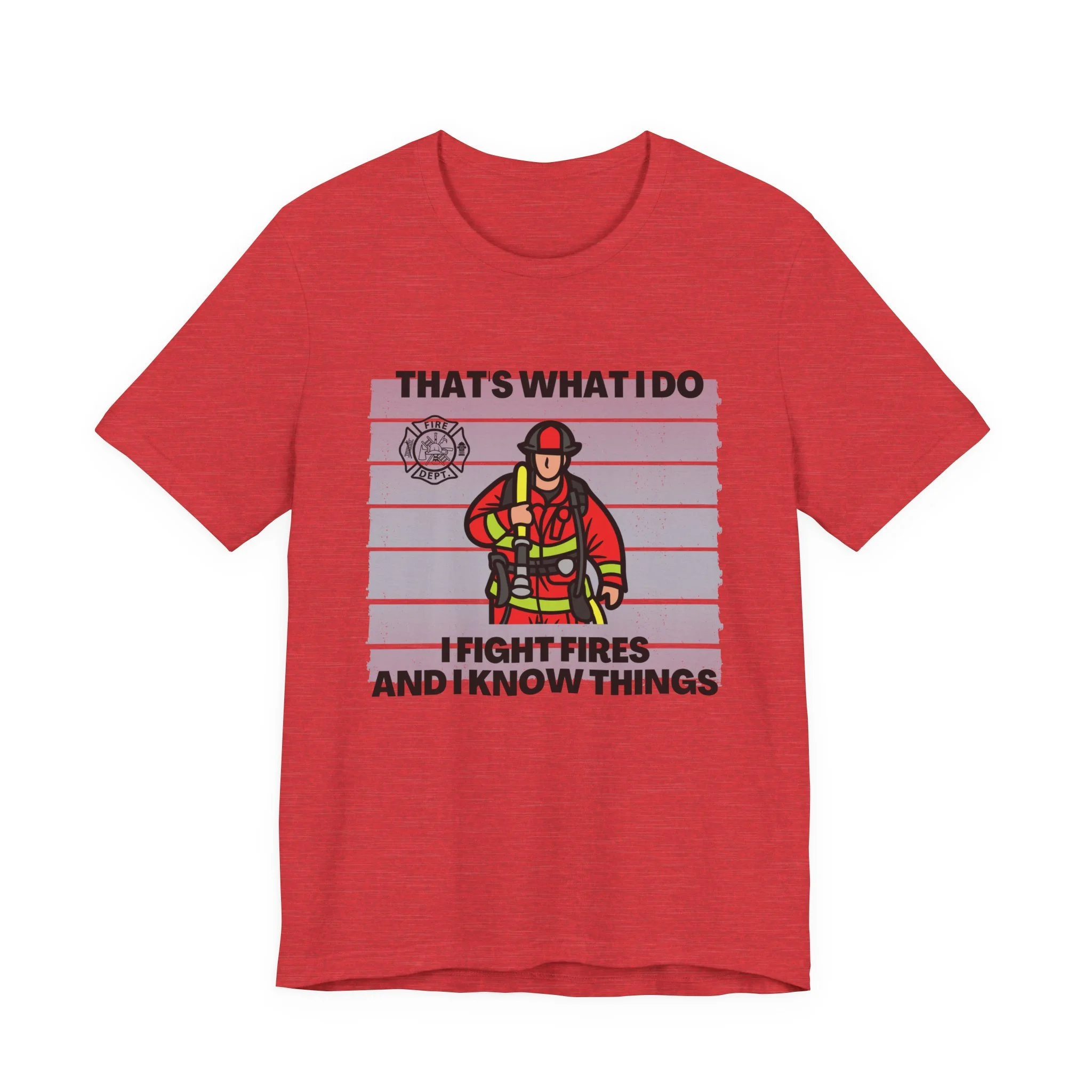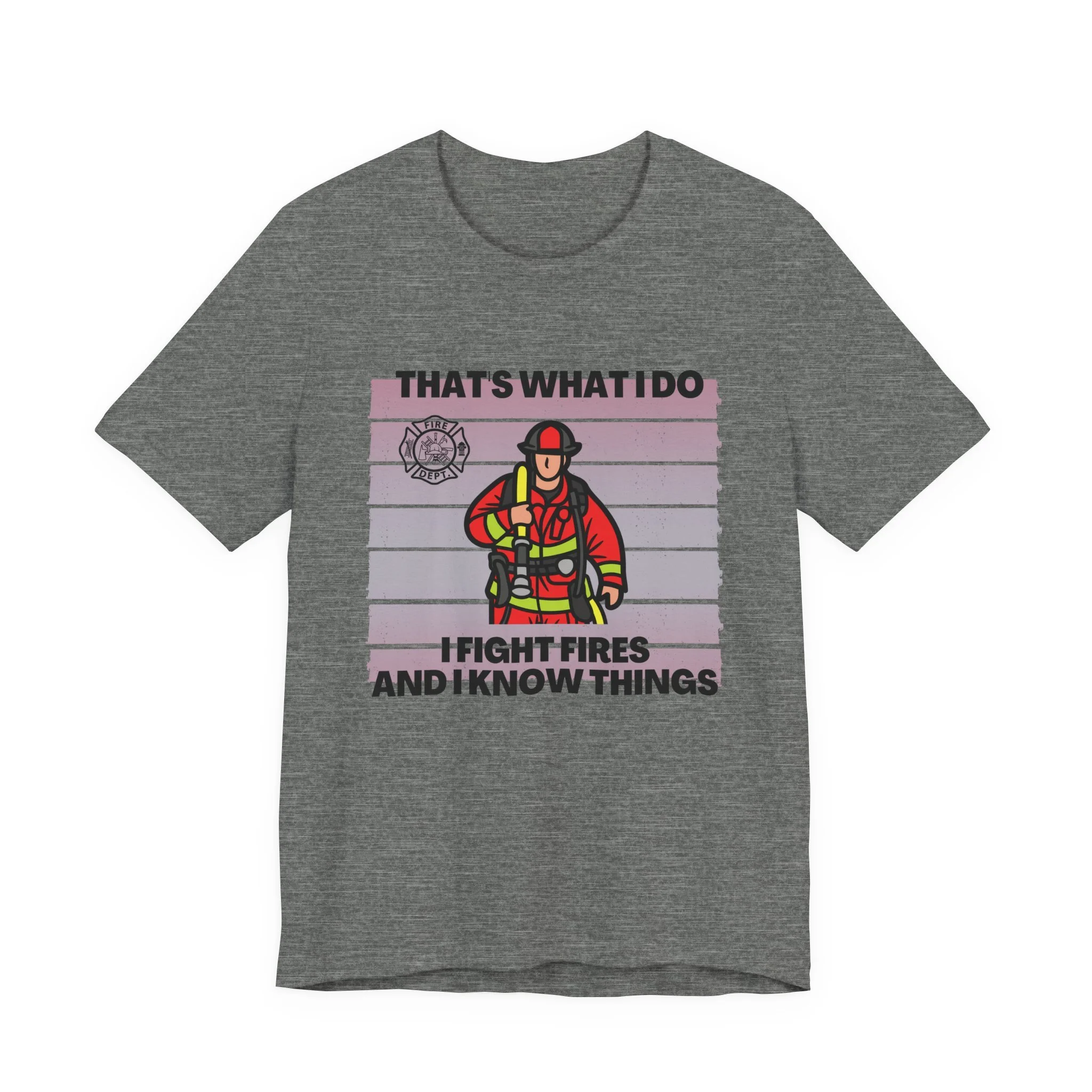 I Fight Fires and I Know Things T-Shirt – Bold Firefighter Graphic Tee