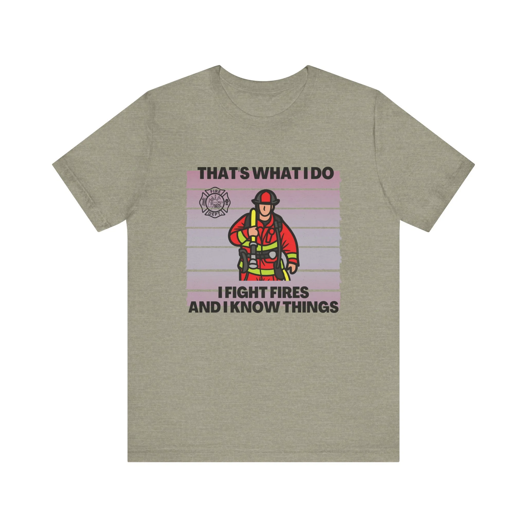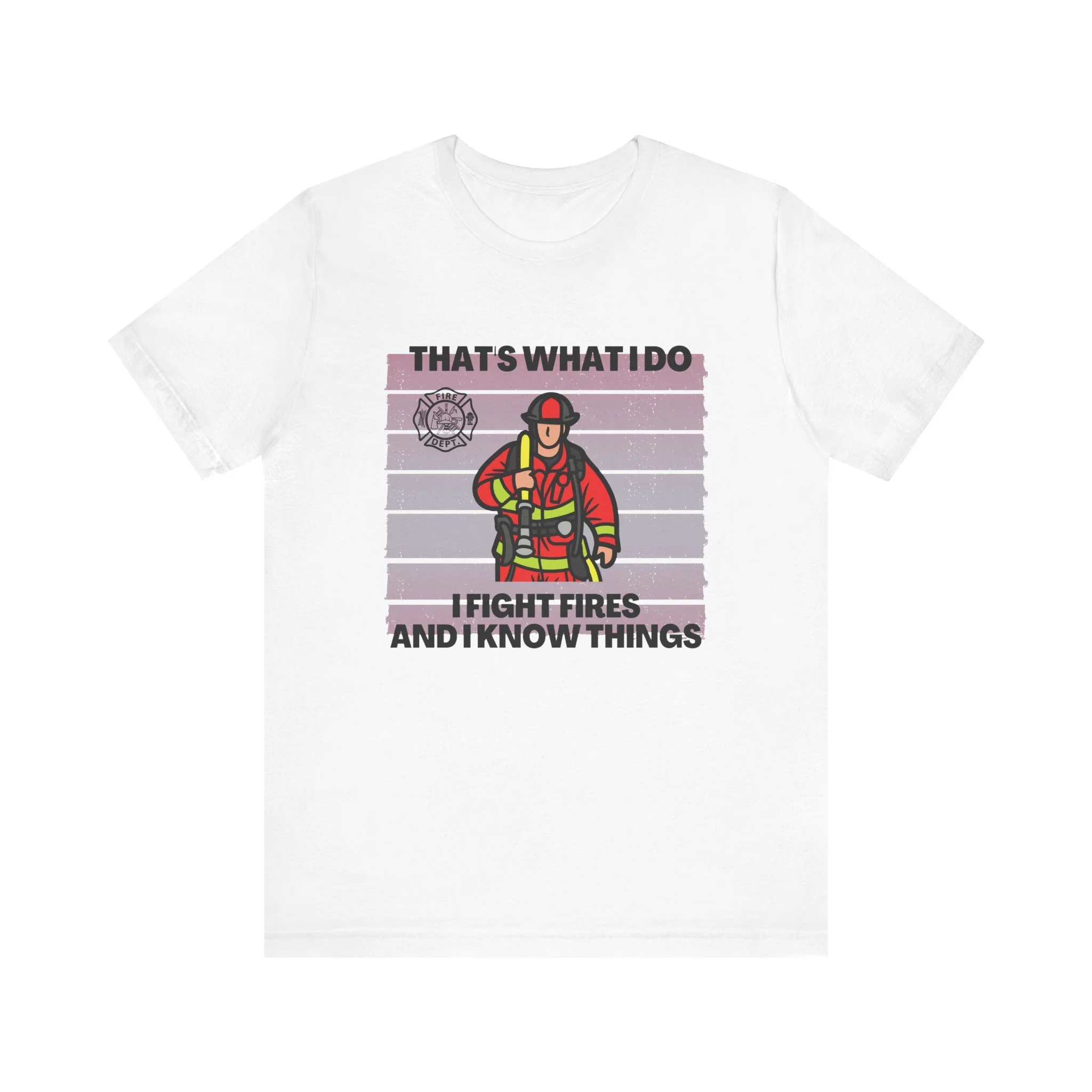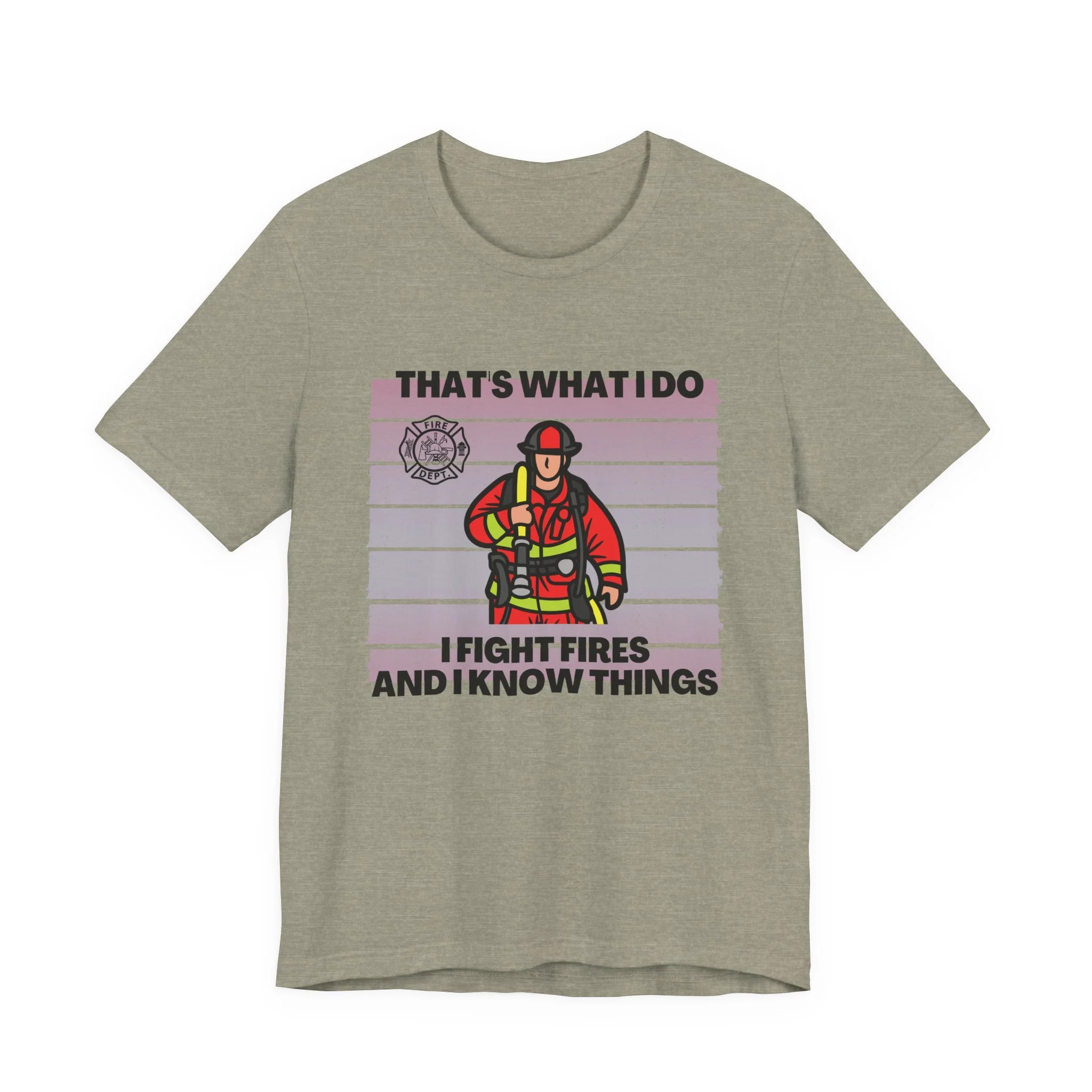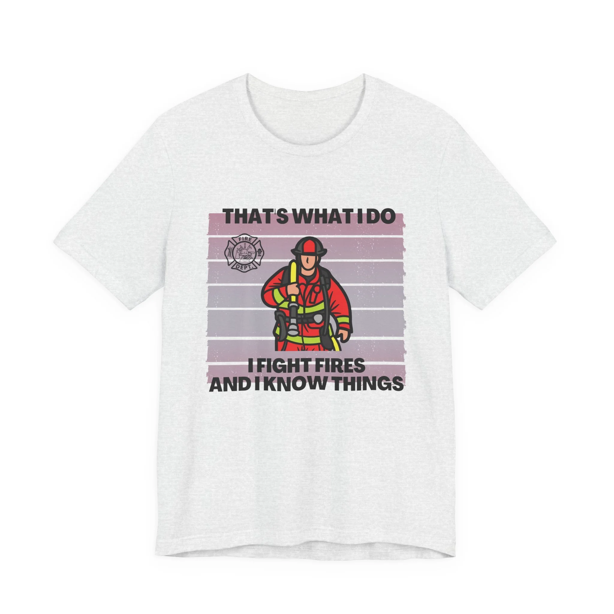 I Fight Fires and I Know Things T-Shirt – Bold Firefighter Graphic Tee