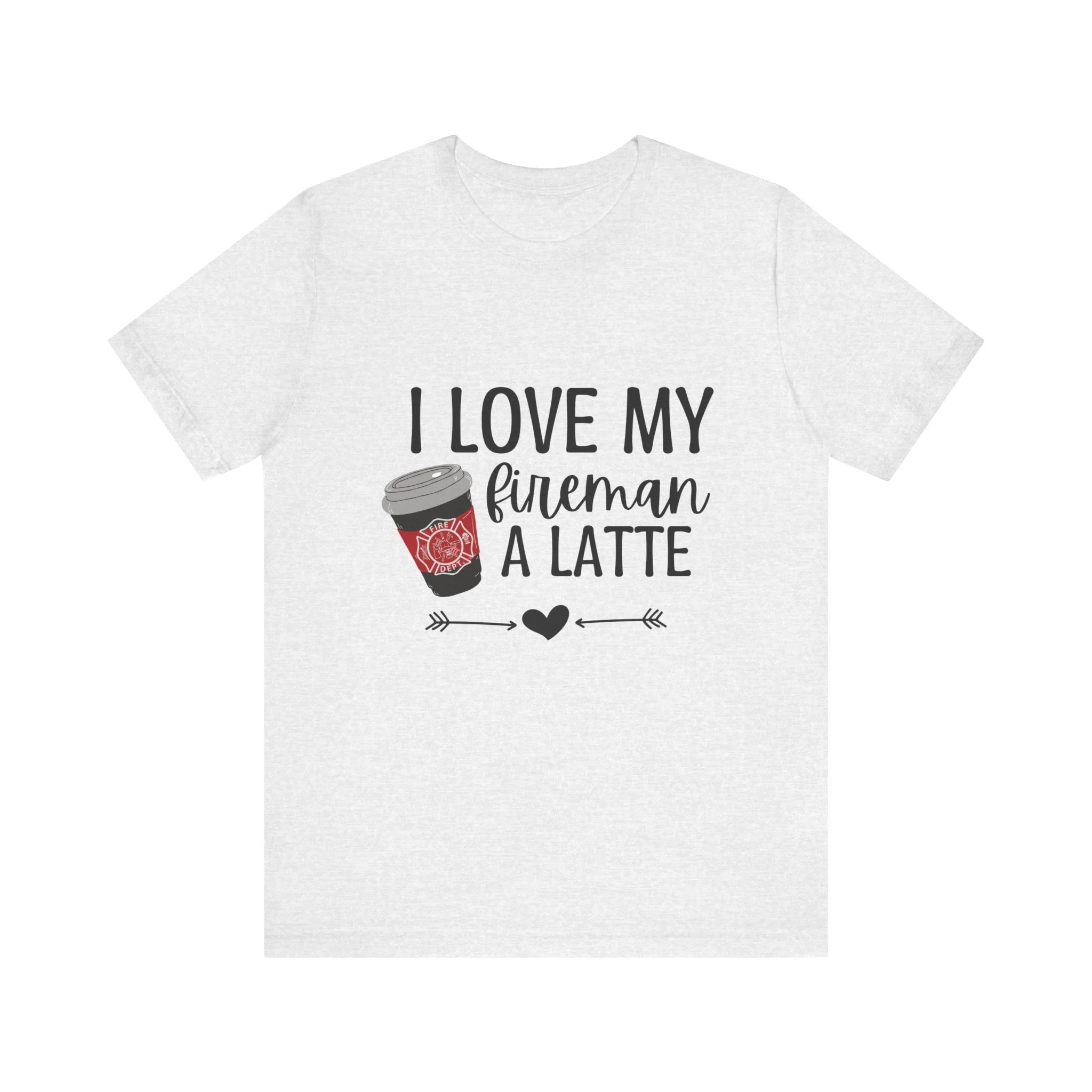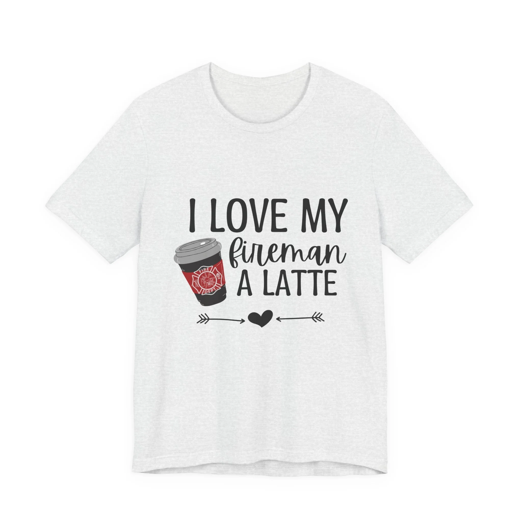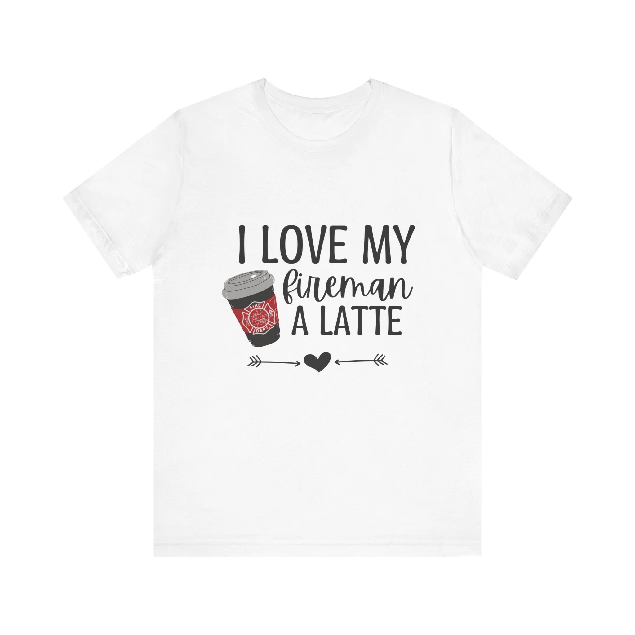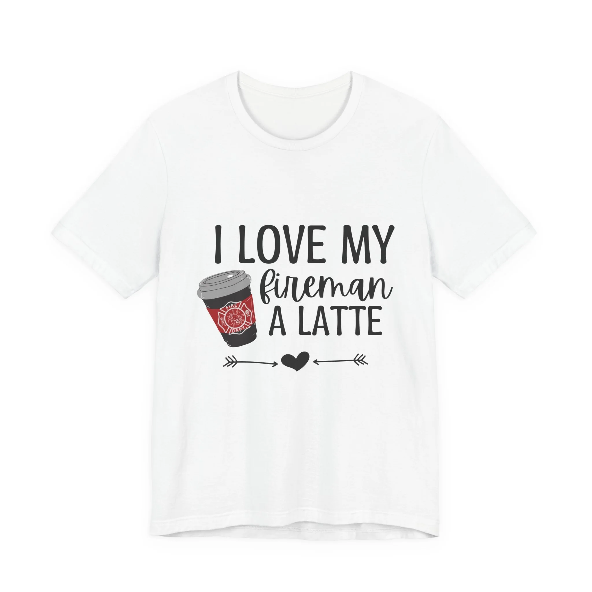 I Love My Fireman a Latte T-Shirt – Cute Firefighter Wife Coffee Tee
