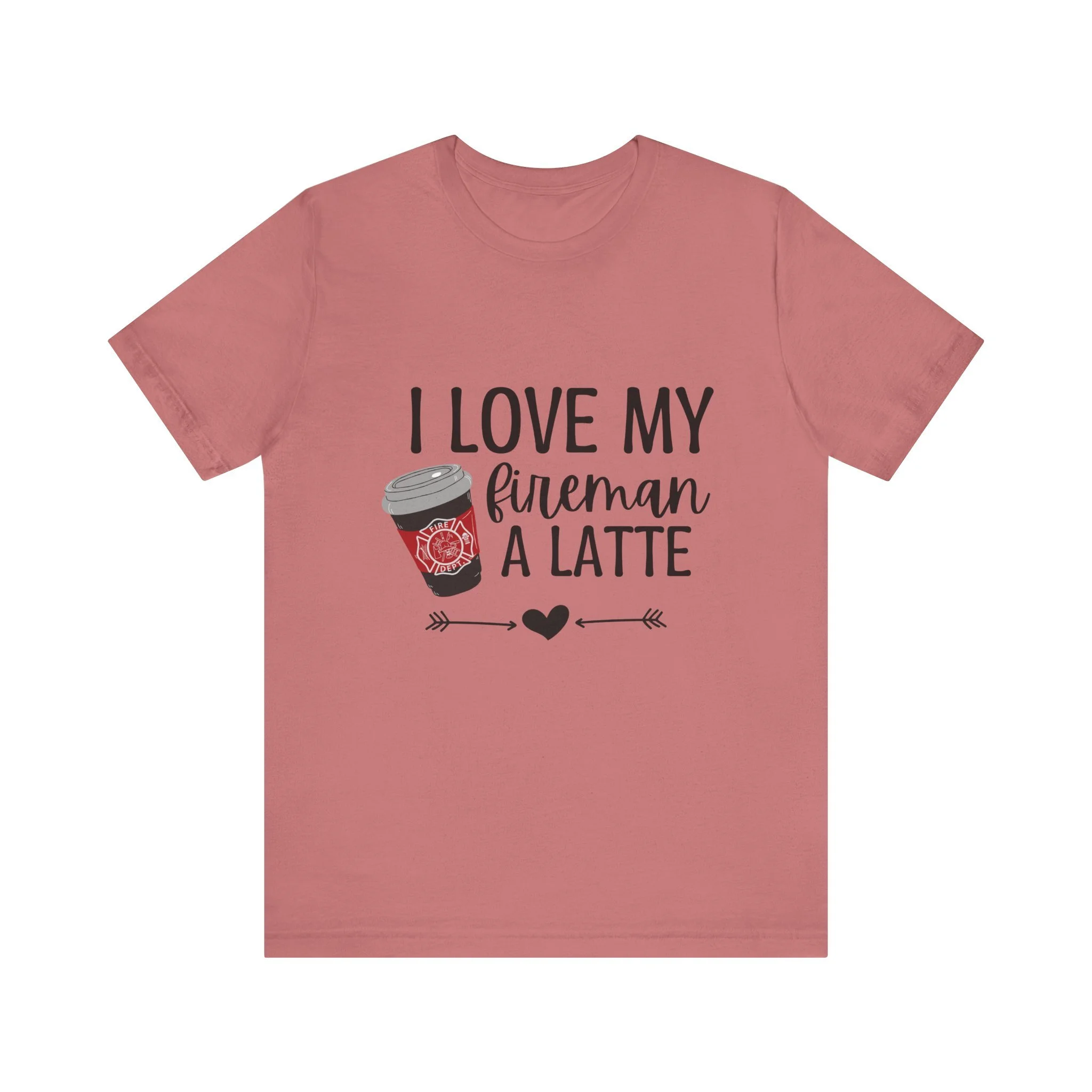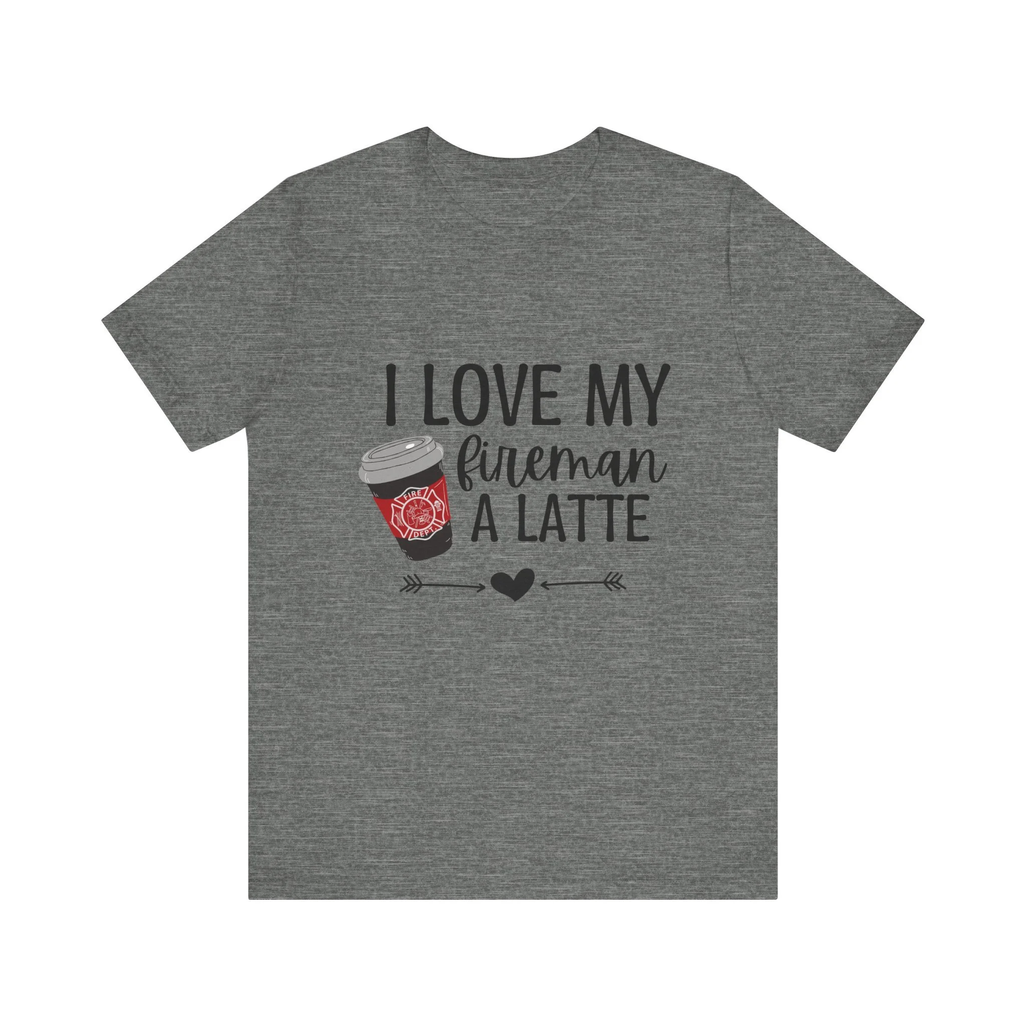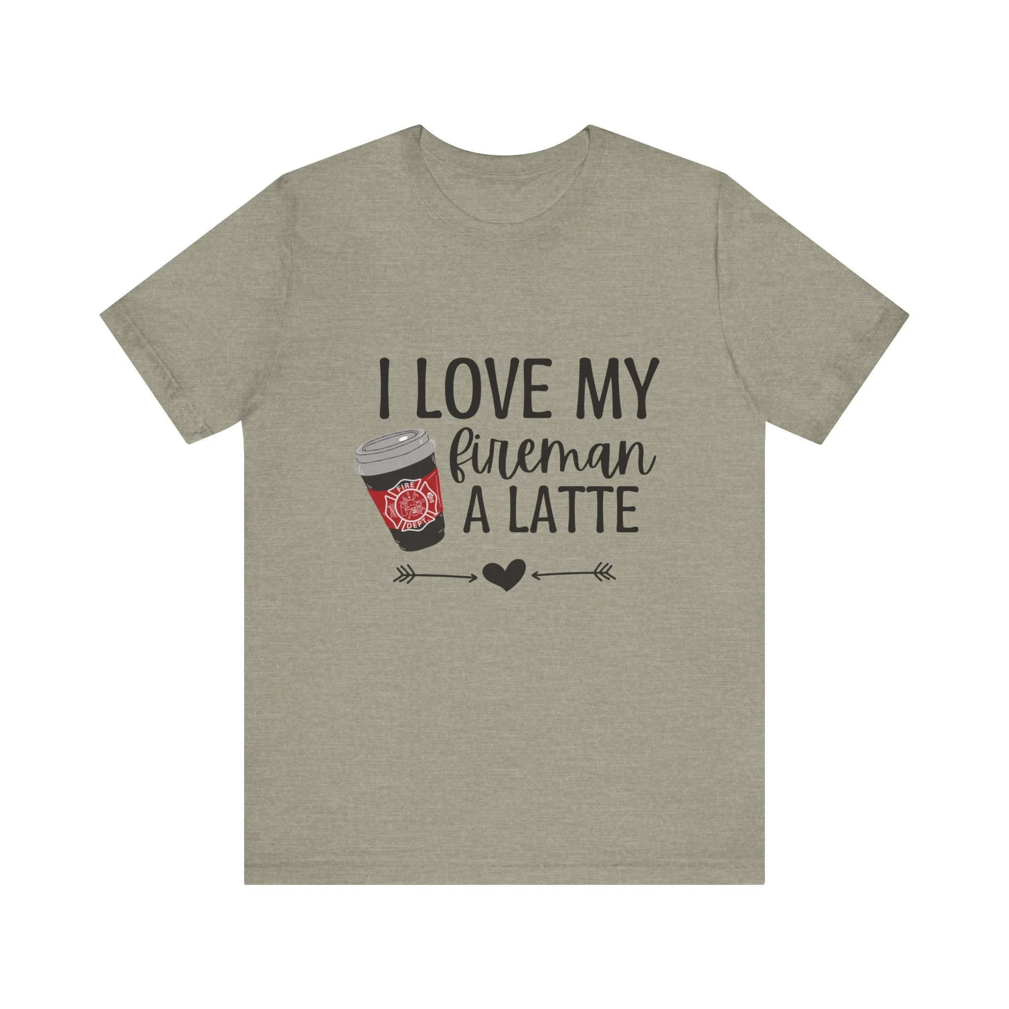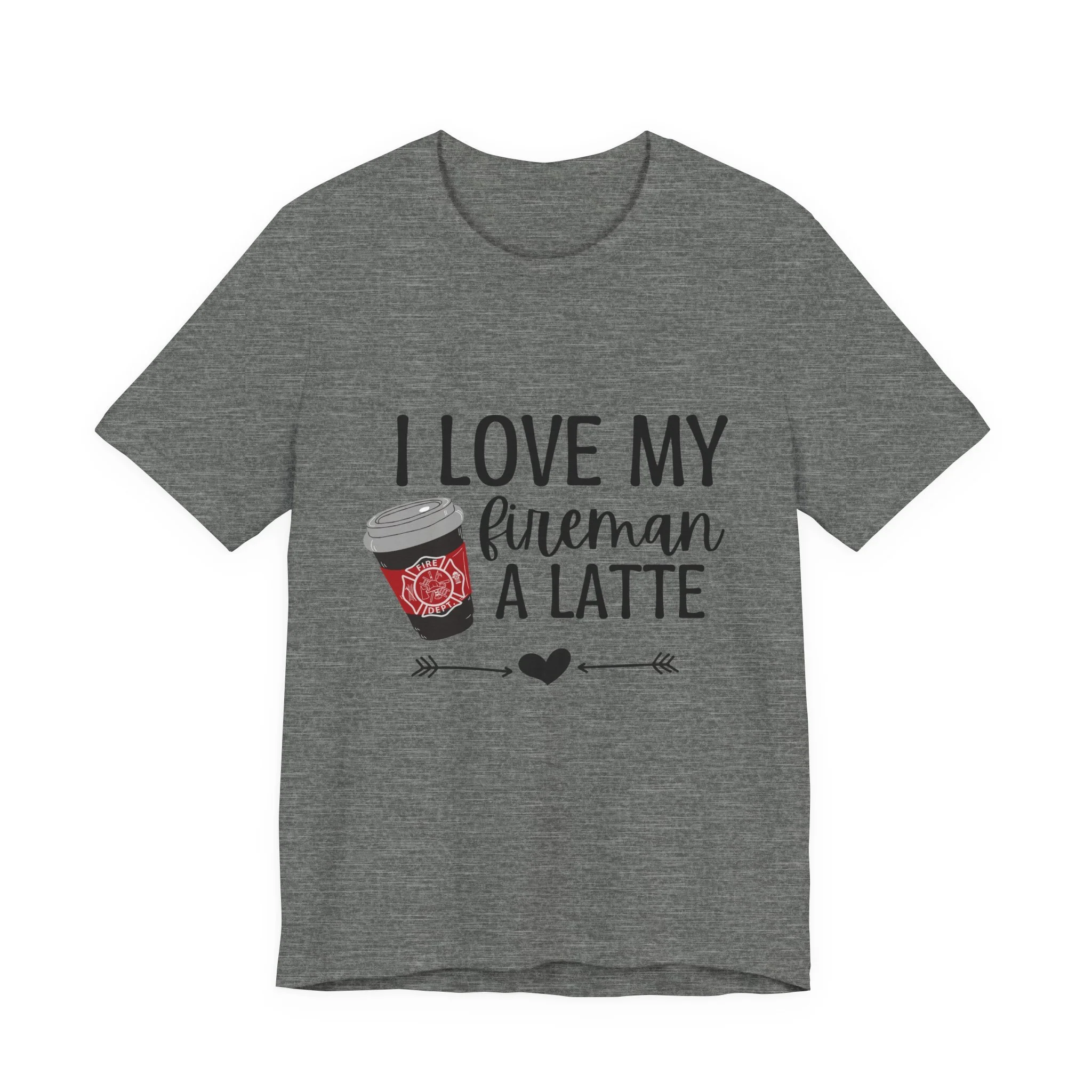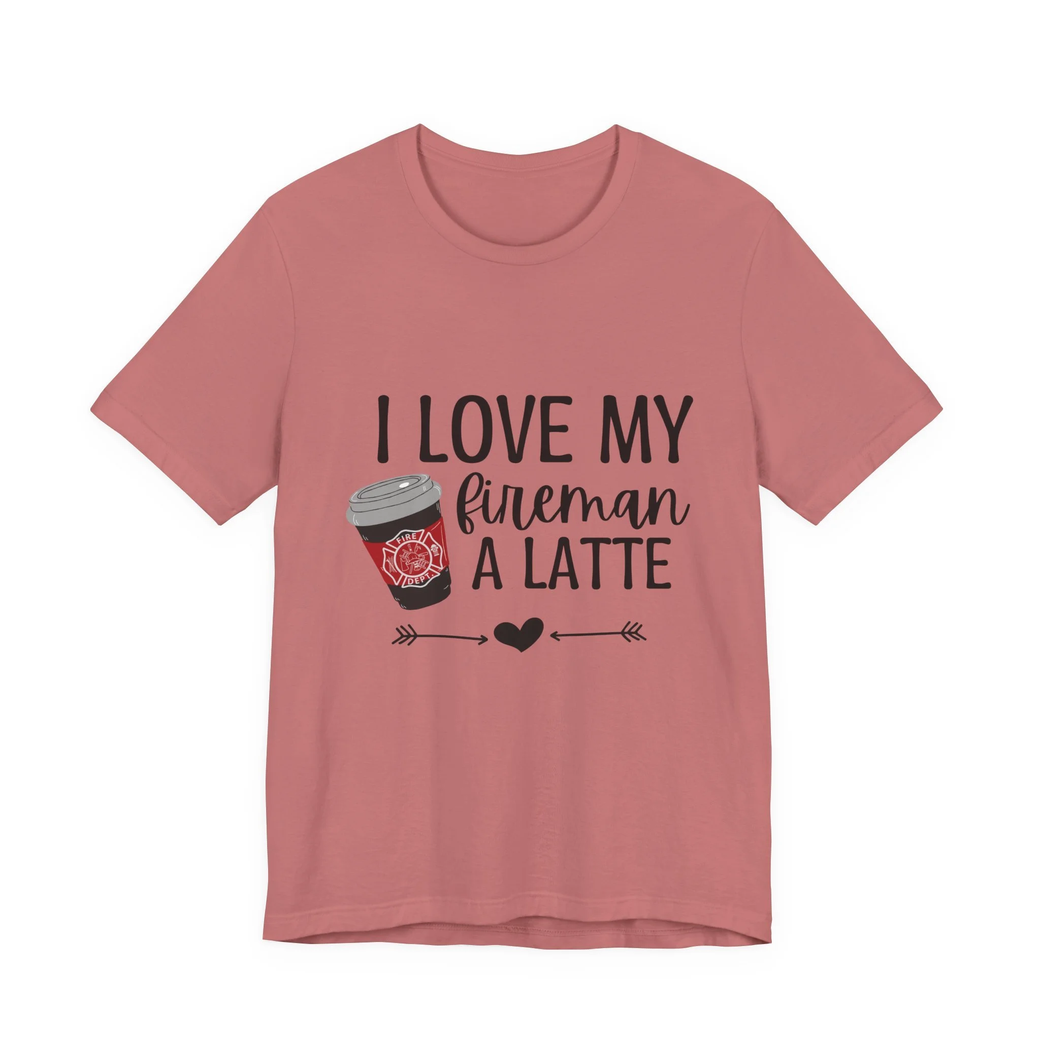 I Love My Fireman a Latte T-Shirt – Cute Firefighter Wife Coffee Tee