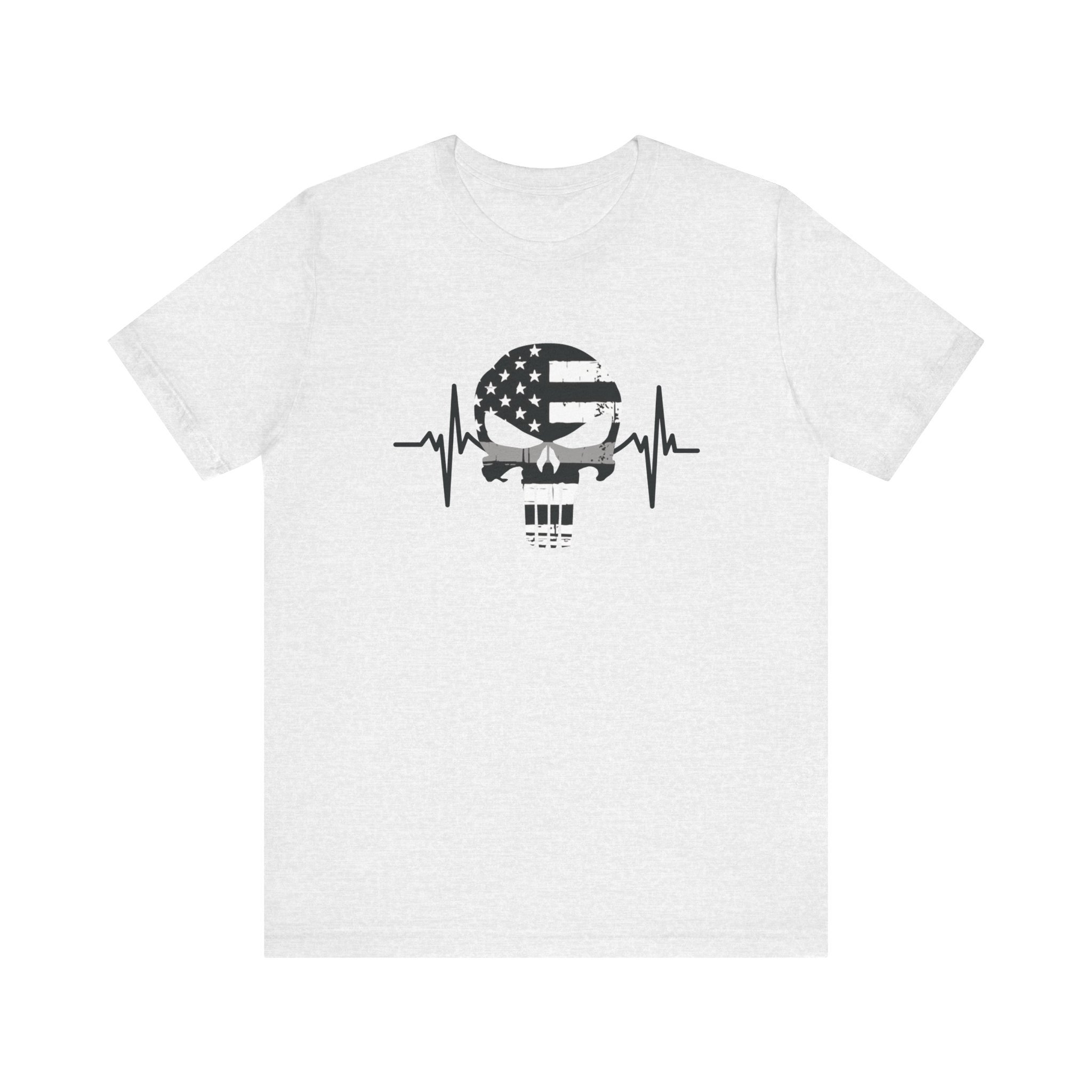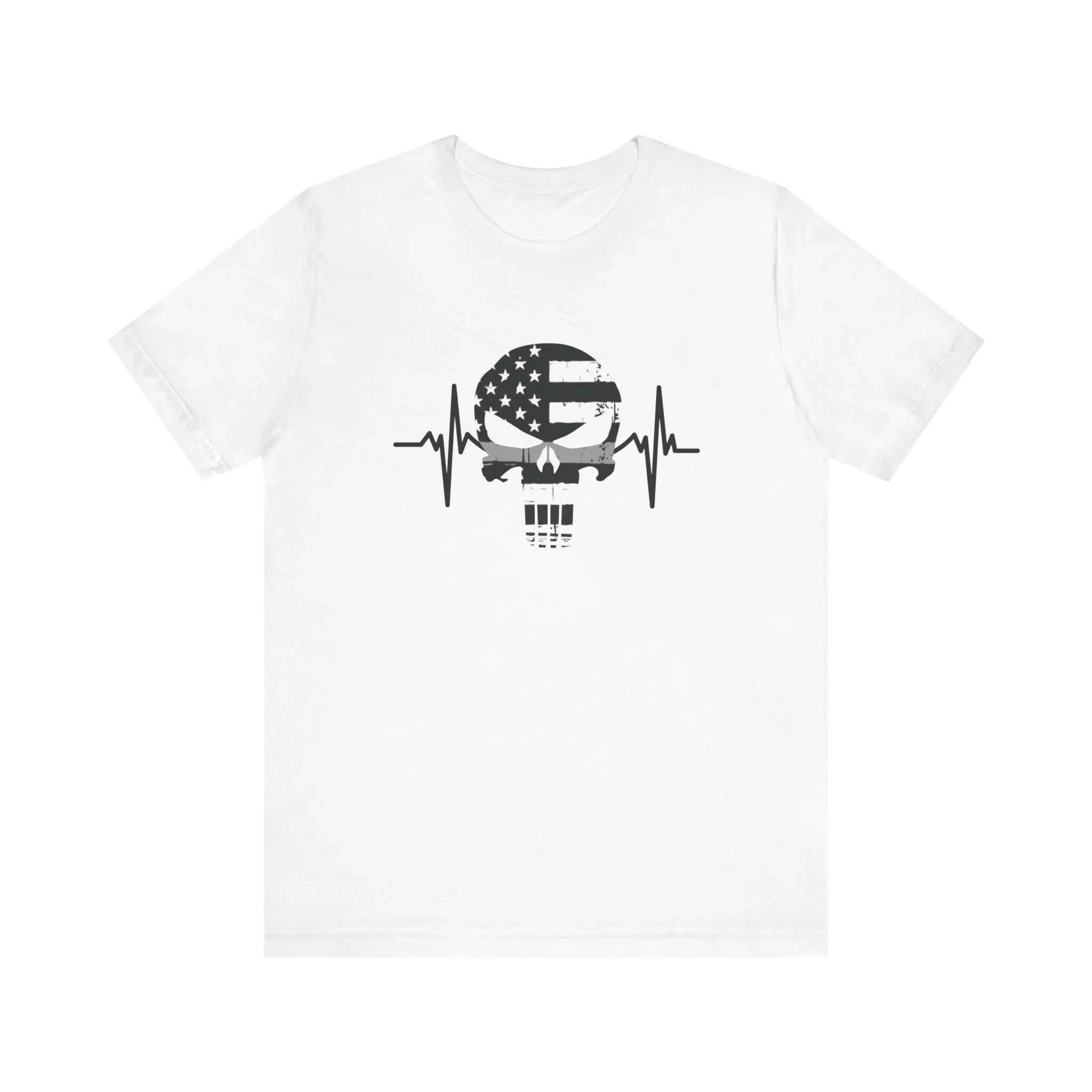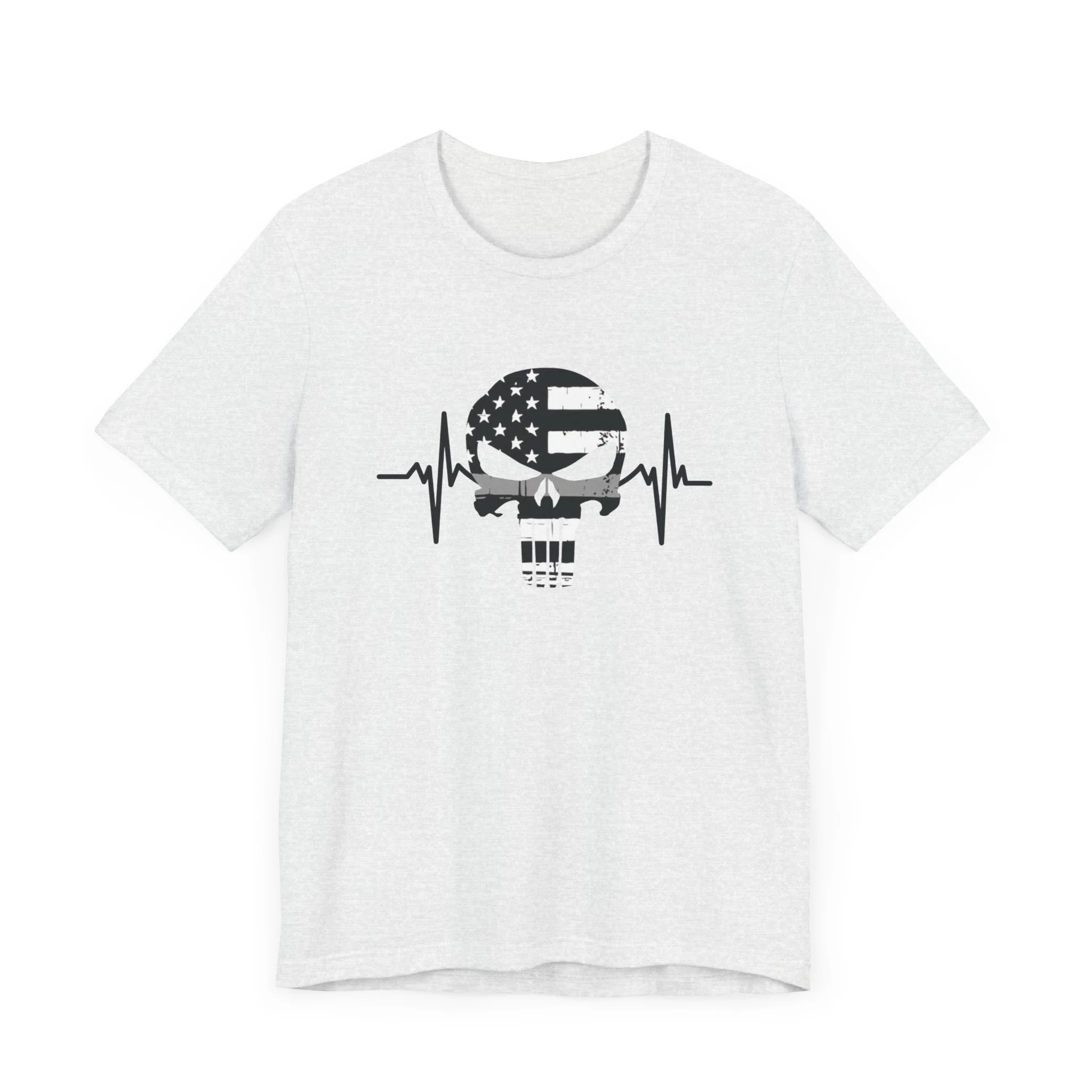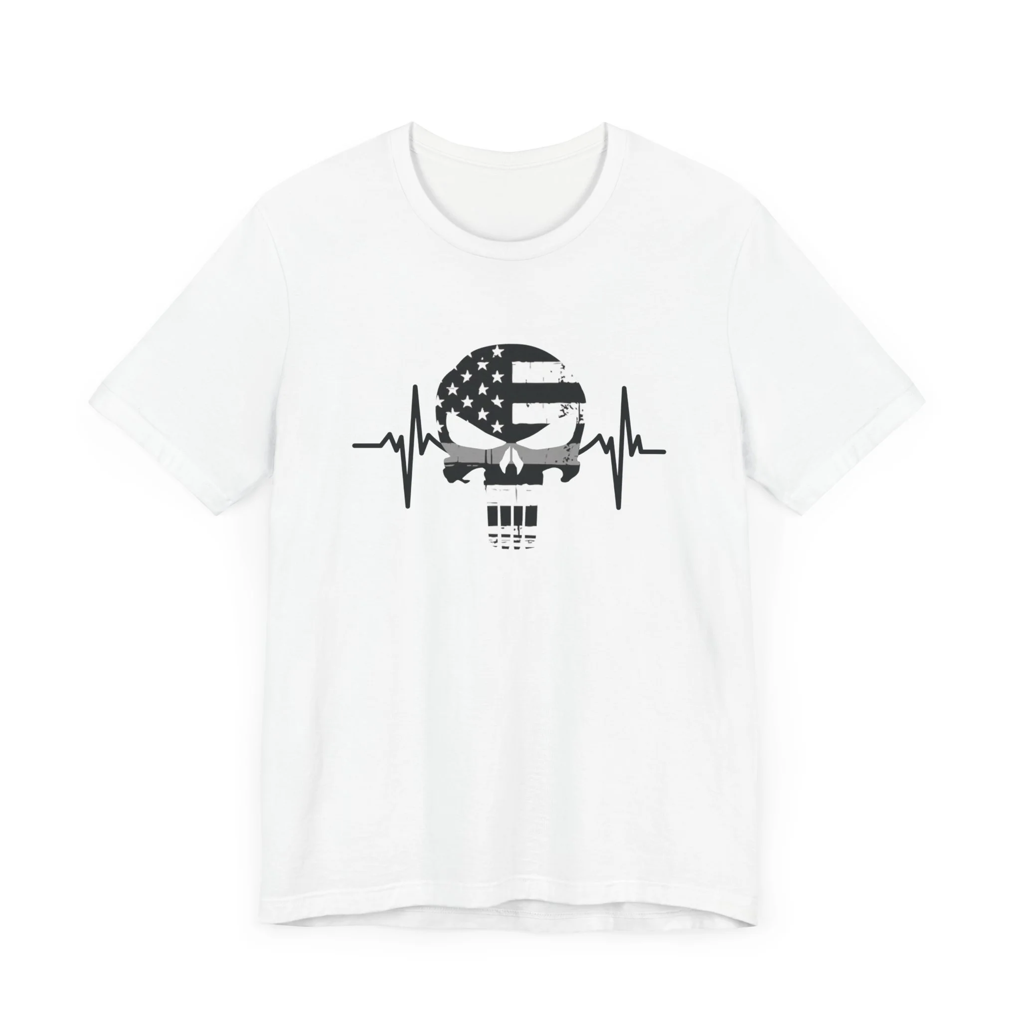Thin Silver Line Skull Heartbeat T-Shirt – Punisher-Style Corrections Officer Tee