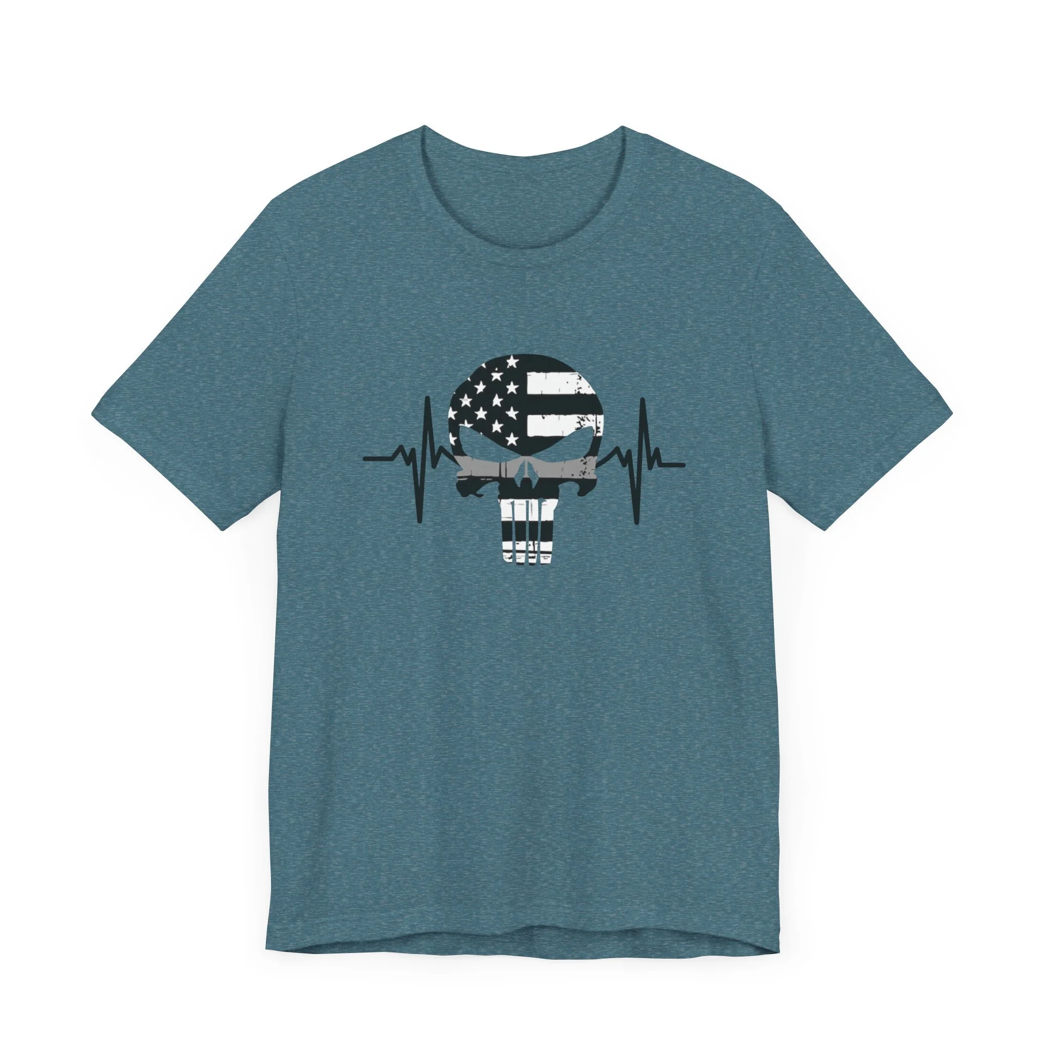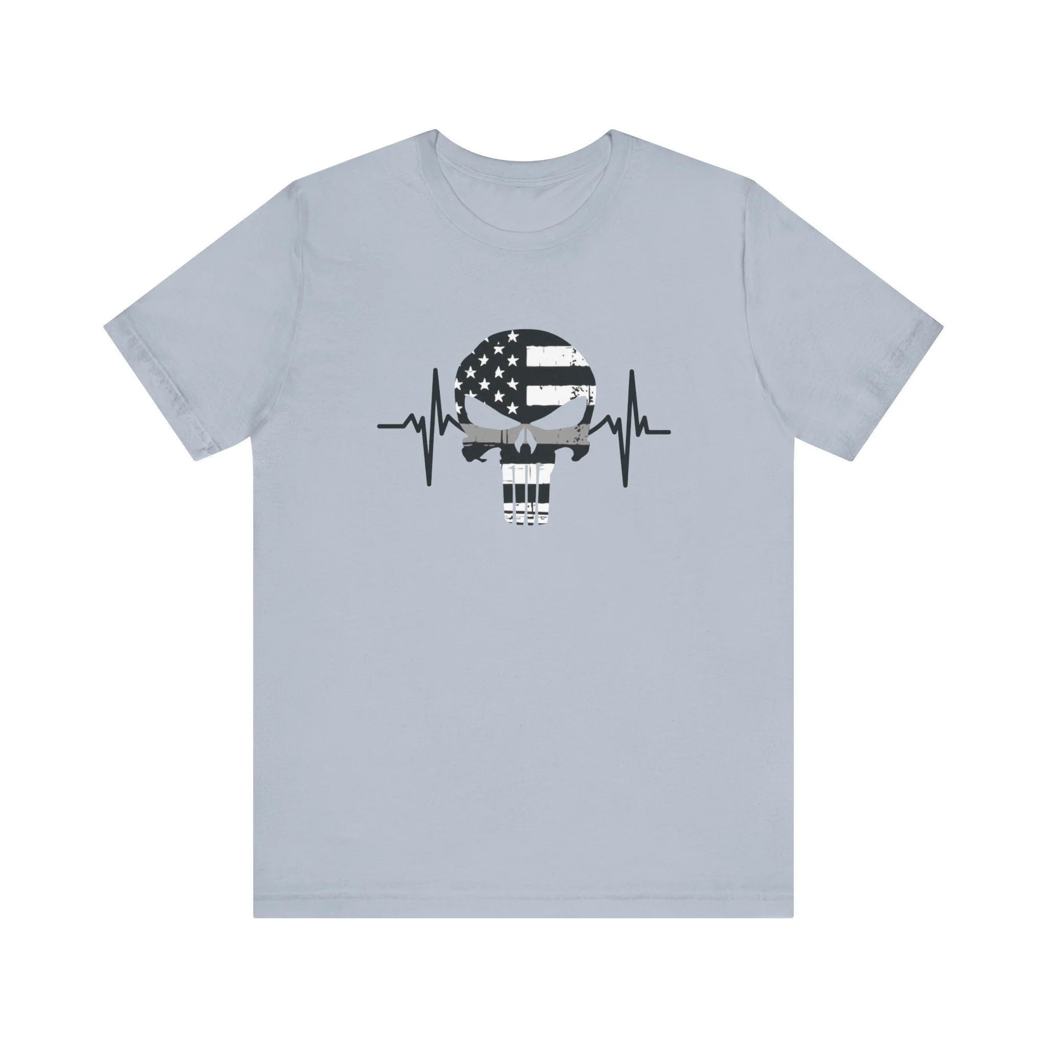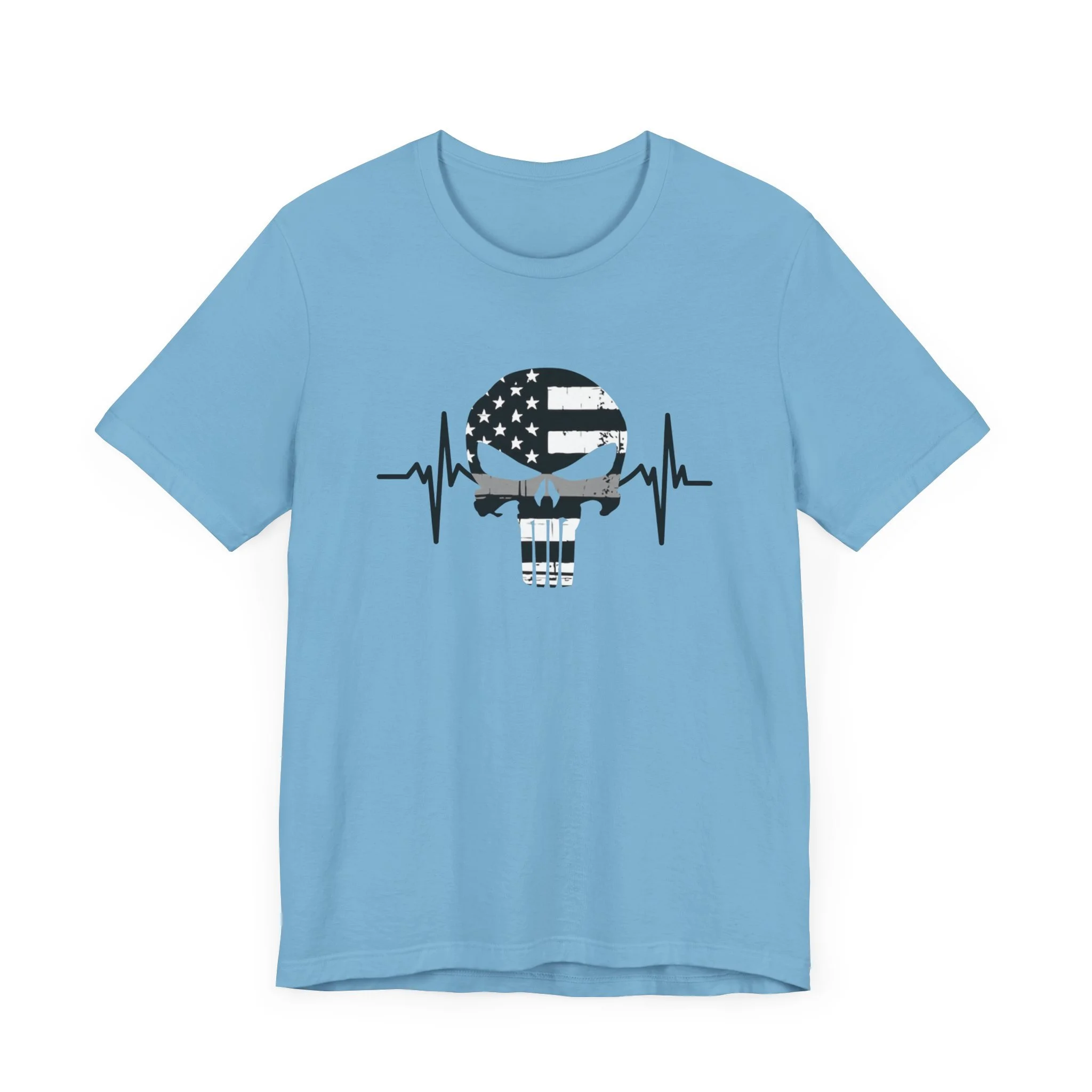 Thin Silver Line Skull Heartbeat T-Shirt – Punisher-Style Corrections Officer Tee