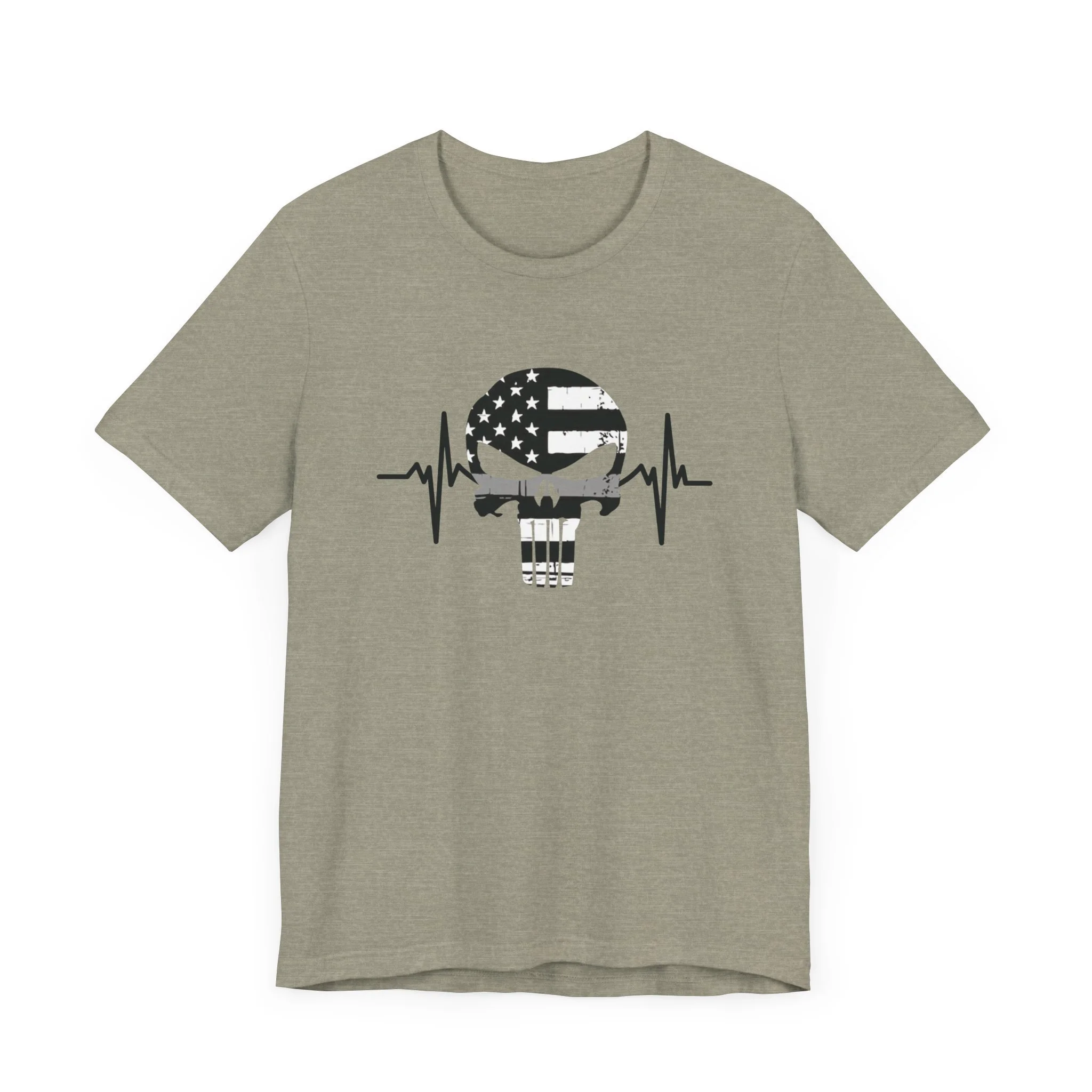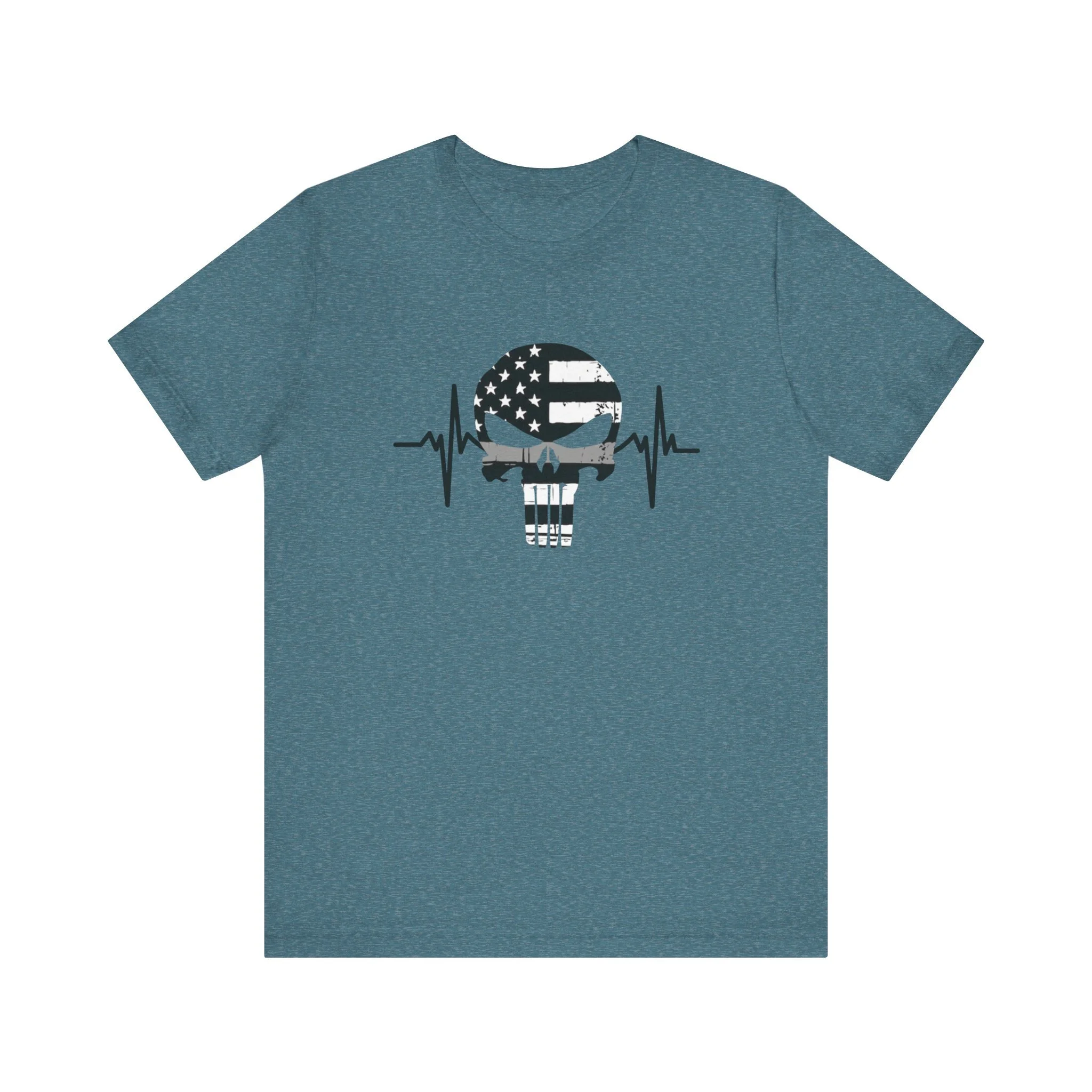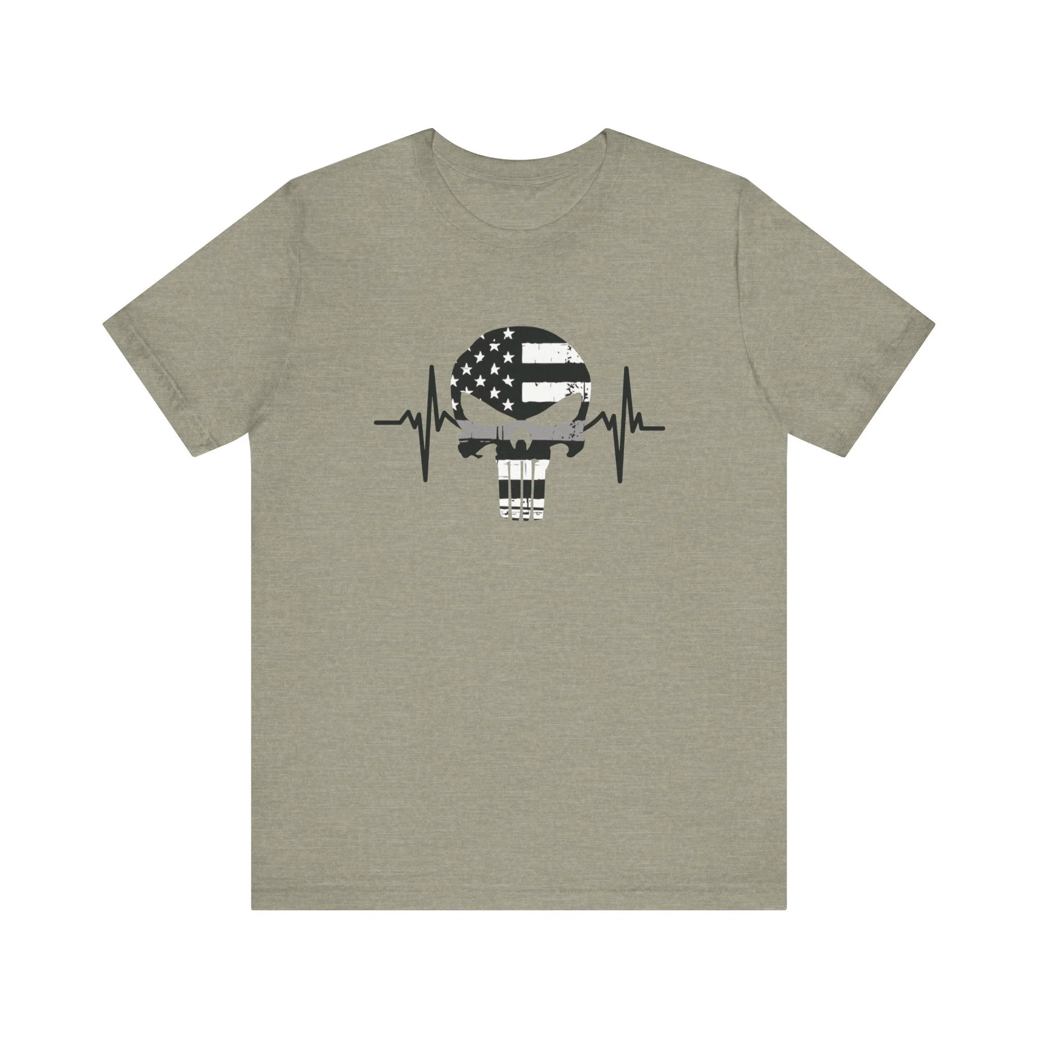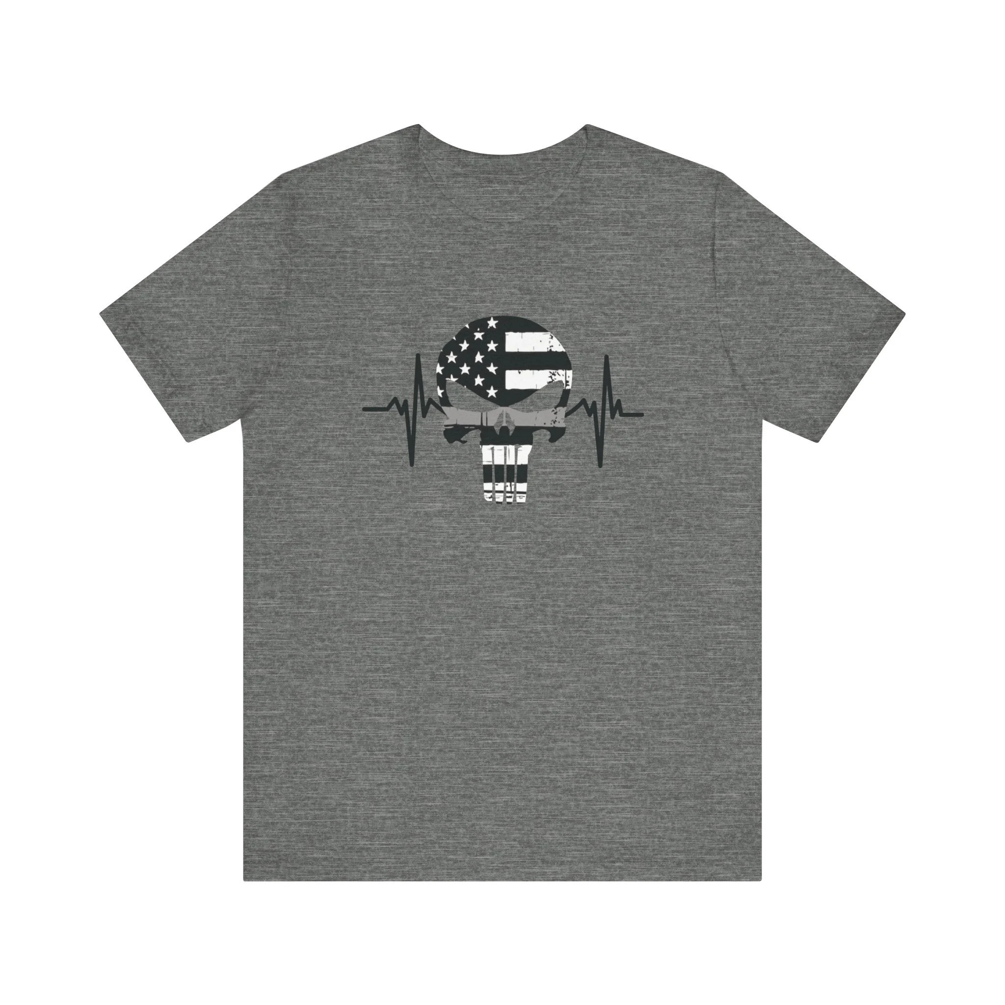 Thin Silver Line Skull Heartbeat T-Shirt – Punisher-Style Corrections Officer Tee